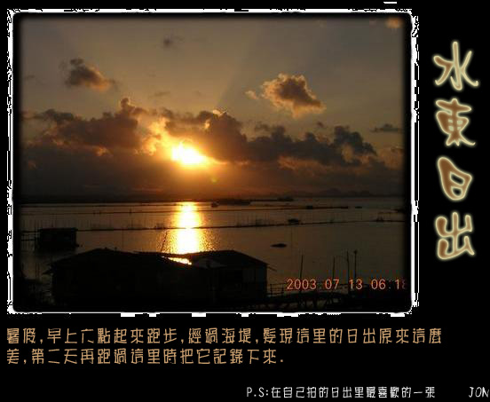 要看美丽水东,除了日出.我想再也找不到别的了.