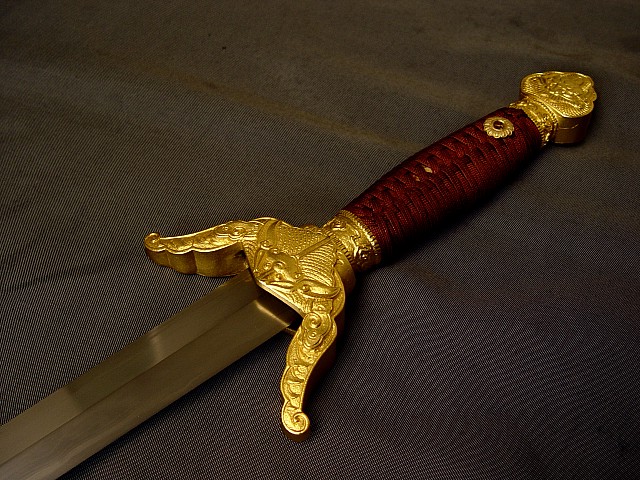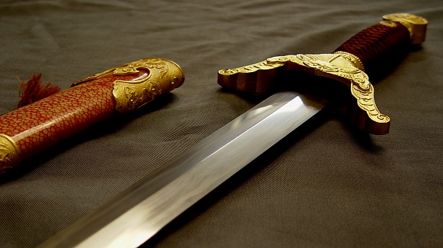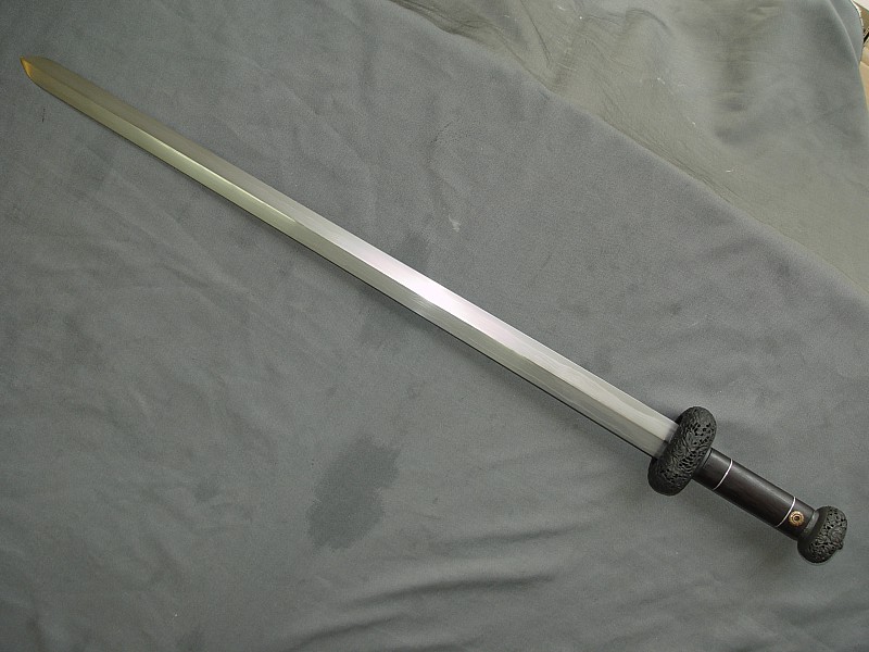 现代做的古法纯手工冷兵器,虽说不能削铁如泥,但削竹如泥是不成问题的.每一把刀剑都经过上万次的折叠煅打,是真正传说中的神兵利器.当然每把的造价也不低,看师傅的名气与手工而不等,基本上都中5000至10000多不等,目前国内的名家有"欧冶""竹本"等人~~~