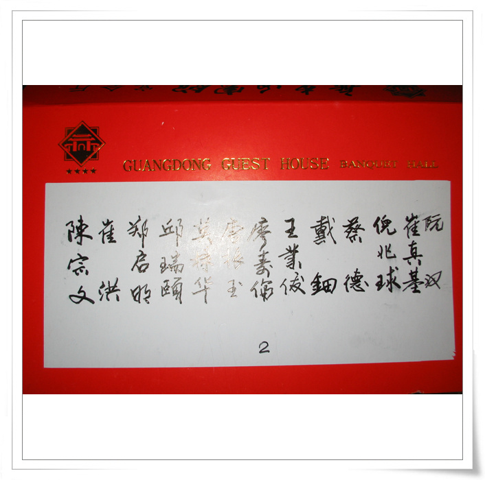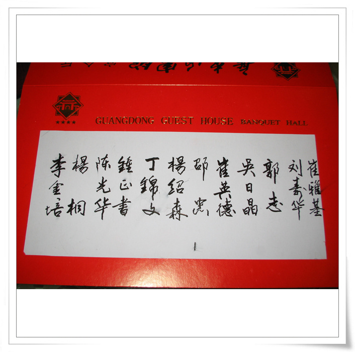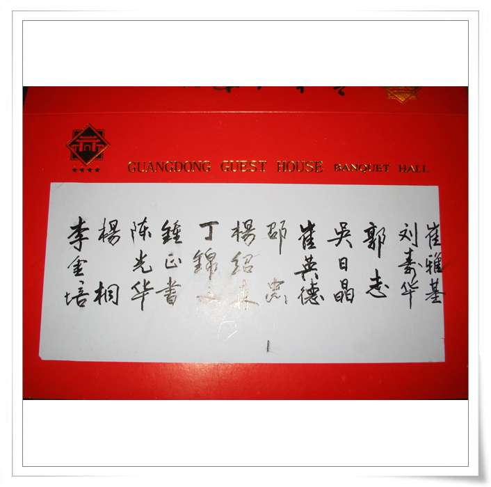 在演员的休息室见到了钟新宁,卢海潮,黄俊英,李池湘,何宝文,伍燕,宋嘉其,崔国汉等师友”