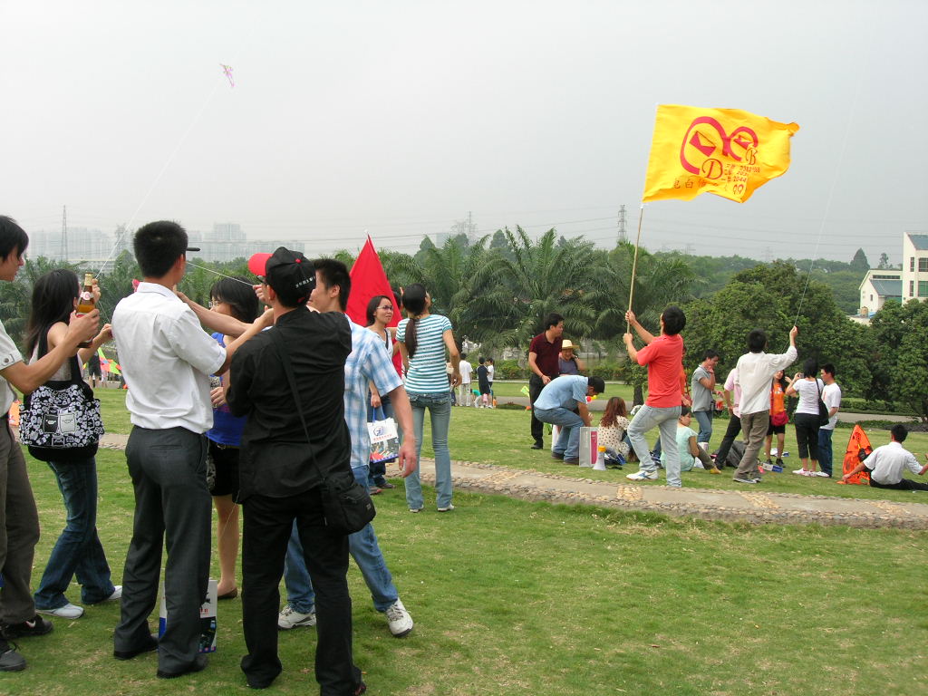午餐过后大家来到绿茵茵的草地上,那是一个风筝的家园,满天飘着色彩缤纷的各种风筝,随即同乡们飘起自己带来的大风筝……