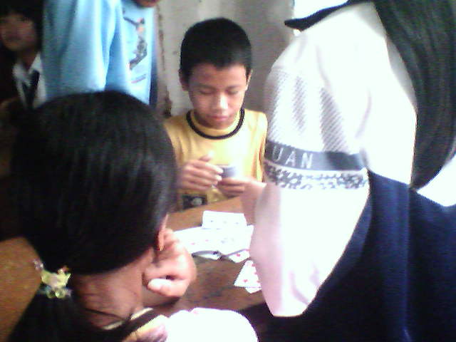上课时男生和女生打扑克,并争吵起来。