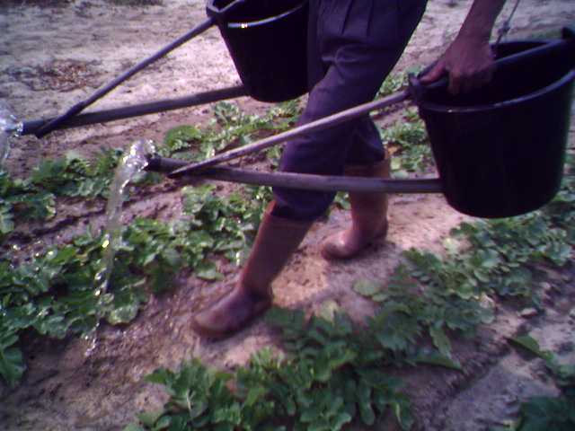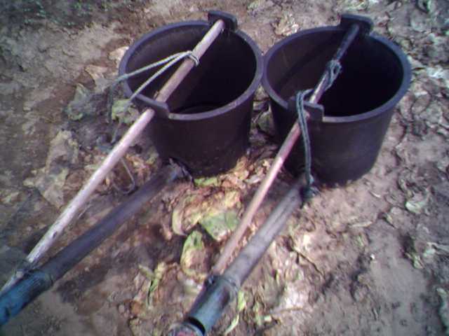 日常农具:尿桶、粪(喷)桶、堪(铁)耙、帮(锄)头。