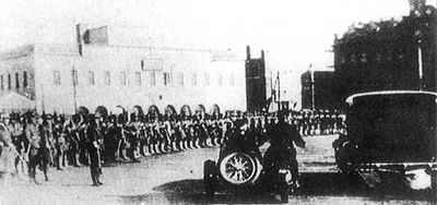 日本侵略军靴下铁钉铿锵,图为骄横不可一世的日寇奈良部队