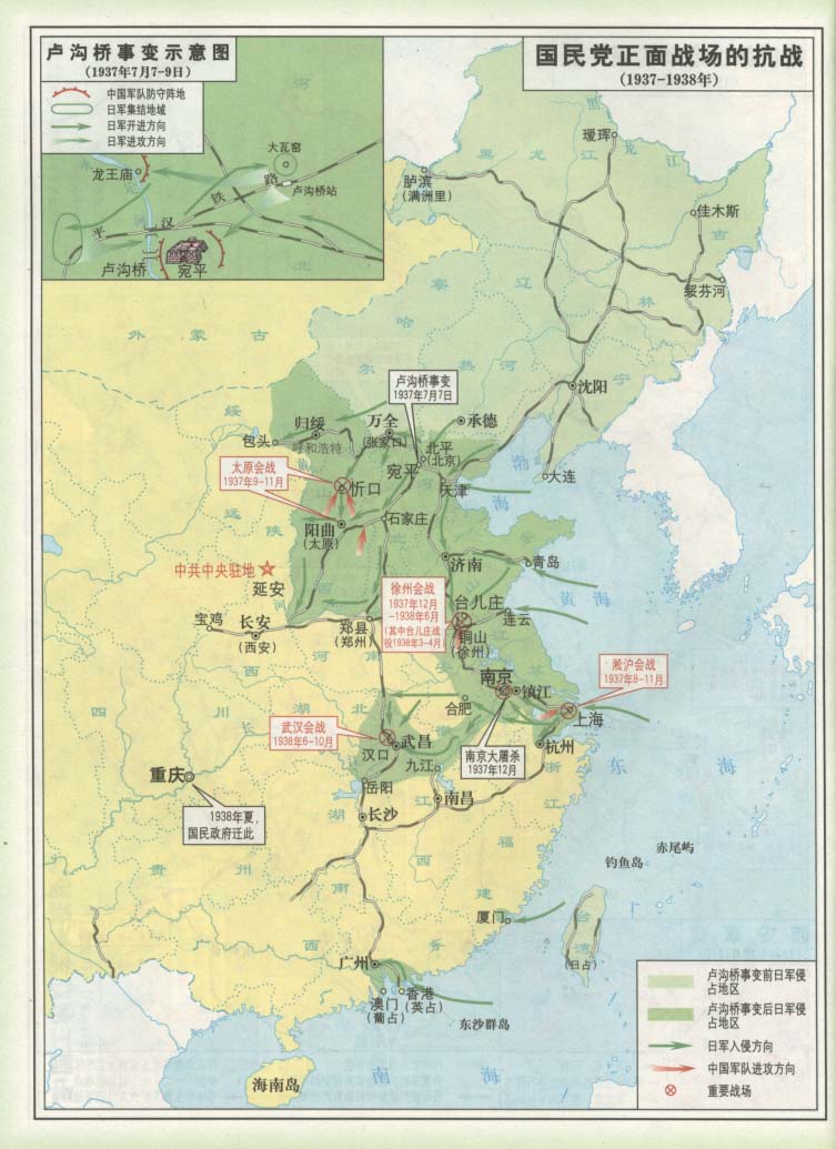 7月7日,日军制造“卢沟桥事变”,开始全面侵华,嗣后日以重兵三路进攻华北。8月,日军大举进攻上海。