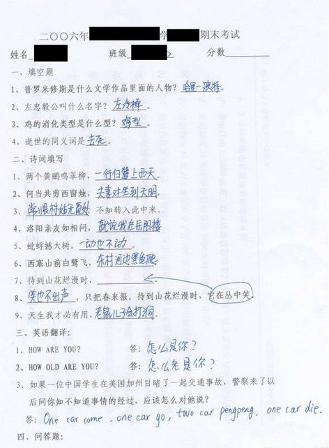 好笑吗?现在的学生都是这样作答的..