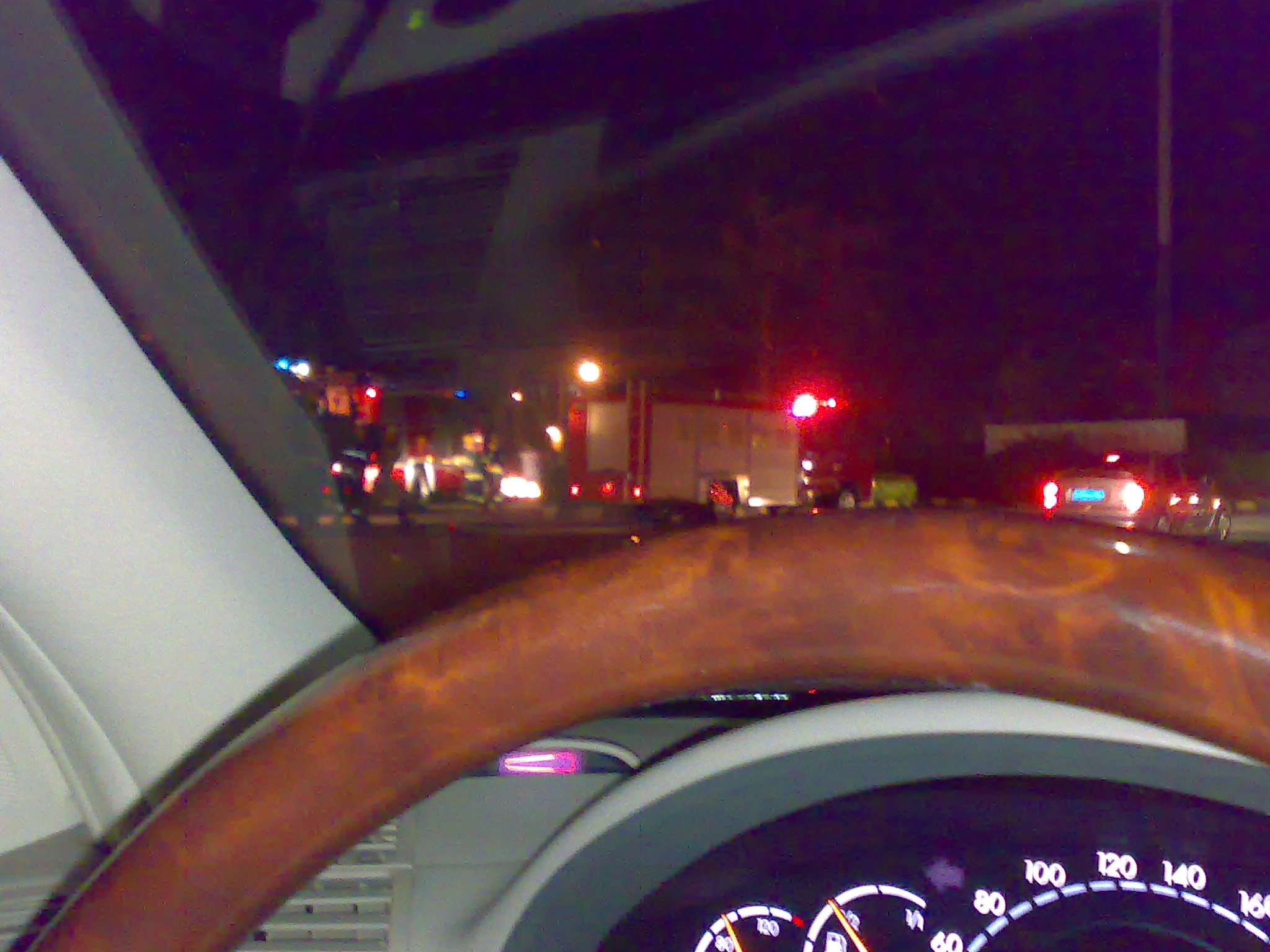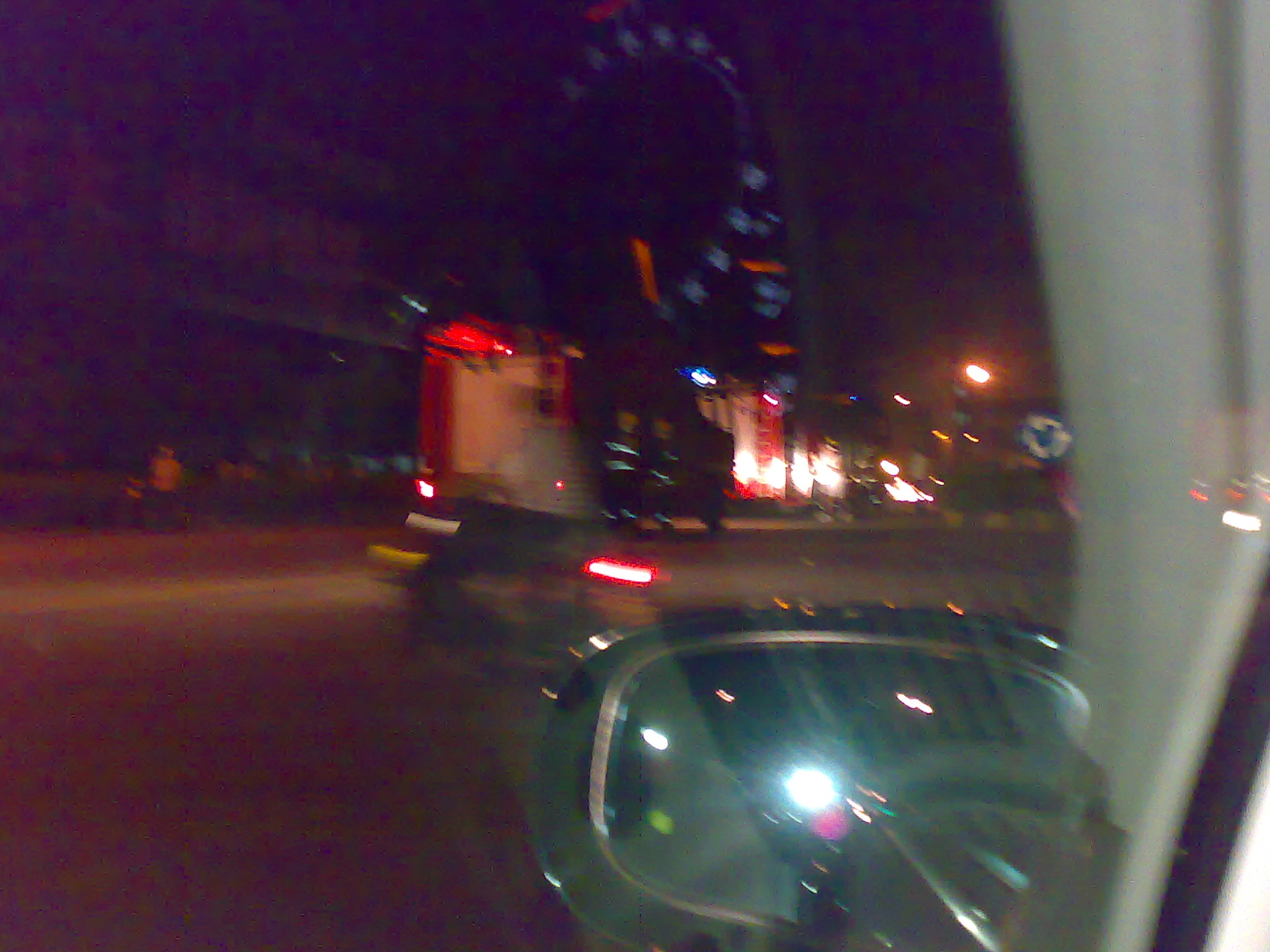 不好意思,一手揸手机,一手揸方向盘,而且水平有限,就在三角墟那个大转盘那里,留意下第一张那团火,亮亮的.........