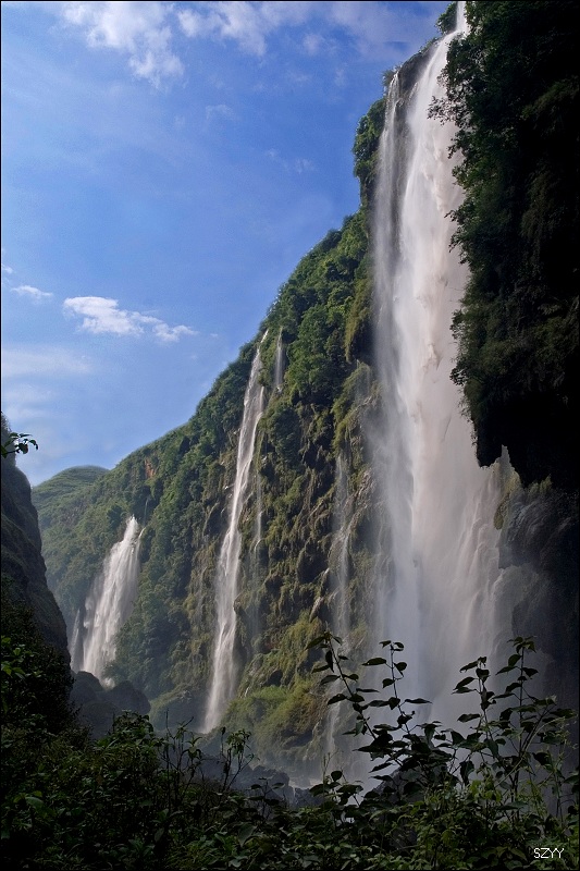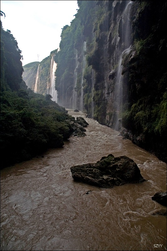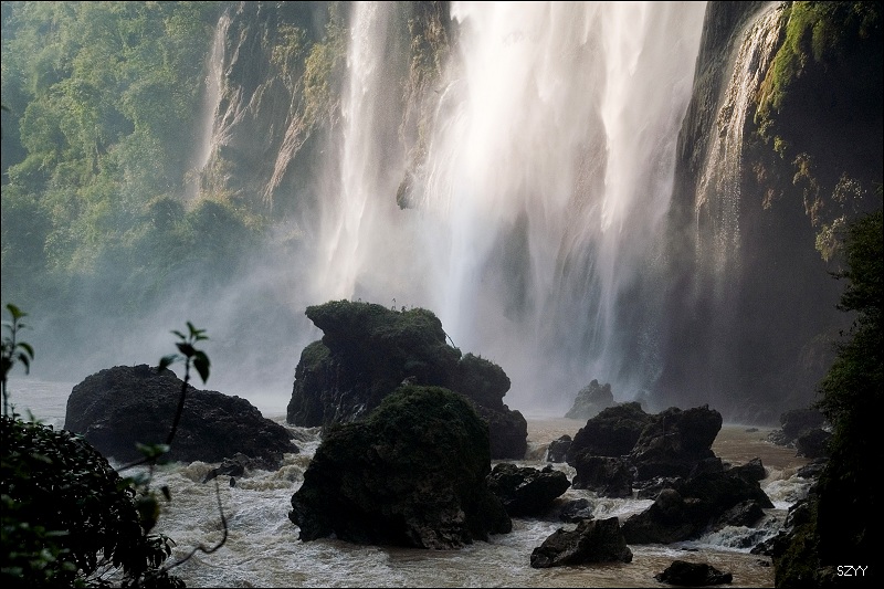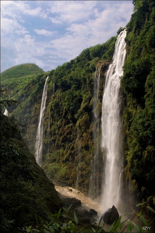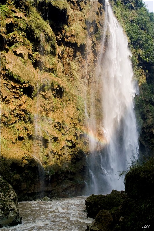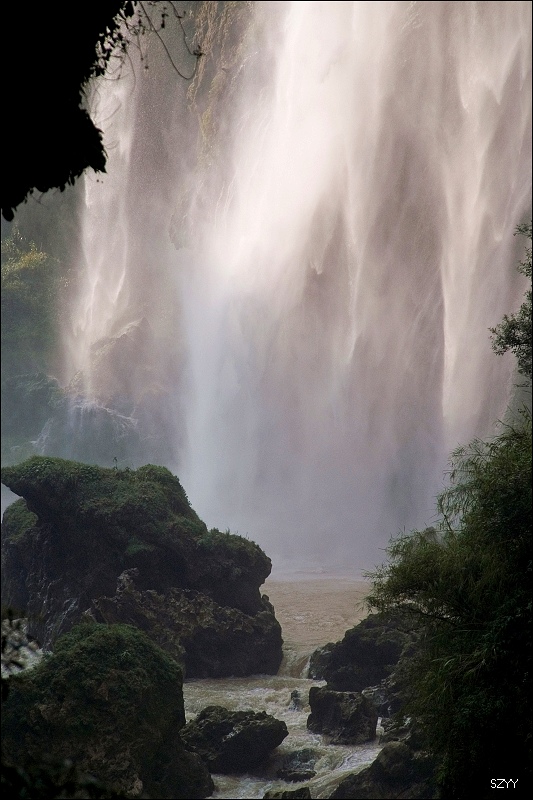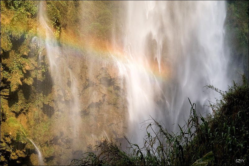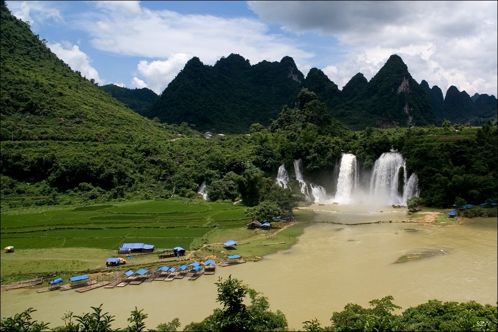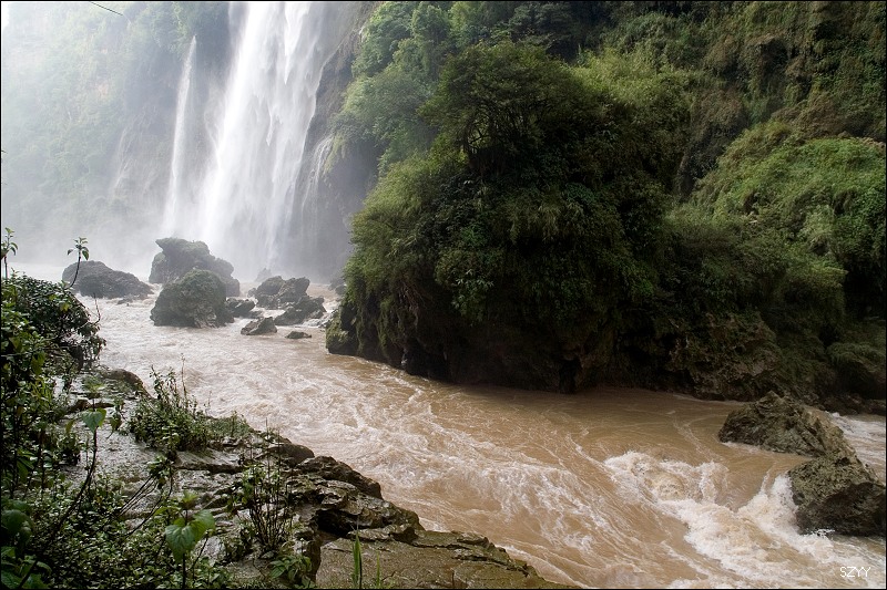 左侧小瀑布属于越南,右侧大瀑布属于中国,以河为界,越南方面计划在河的上游修建水坝,以后要看到漂亮的瀑布就要碰时间了.