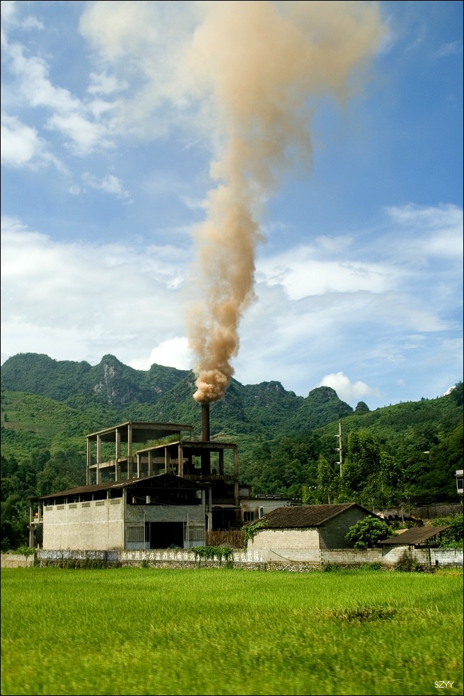 下午2点45分,离开德天,驱车赶往靖西。沿途在喀斯特地貌的小丘陵中穿行,看到几个矿场,污染十分严重,拉矿石的大型载重车把路都压烂了,估计西藏的路也不过如此。继续走210省道,地图上跟实际有很大差别,没有到德保,走的路在图上完全找不到,值得一提的是到了一个路口,一面去田东,另一面去田阳,我们走了一条去田阳的旧路,这条路非常幽静,过去曾经是主干道,现在少有车辆,景色优美,空气清新。