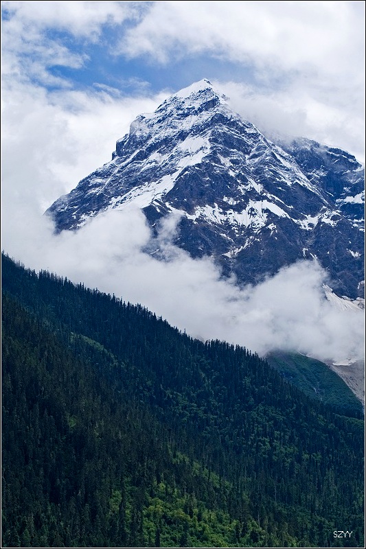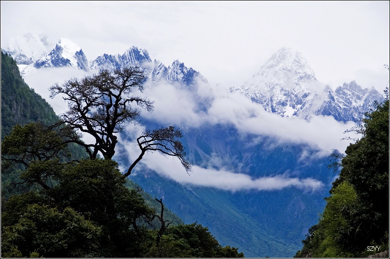 继续前进赶往通麦,我们要争取天黑以前通过通麦天险和排龙天险。一路有无数雪山相伴,蓝天白云,阳光灿烂。我们下车无数次进行拍照,这就是自驾游的好处,可以随时停车。