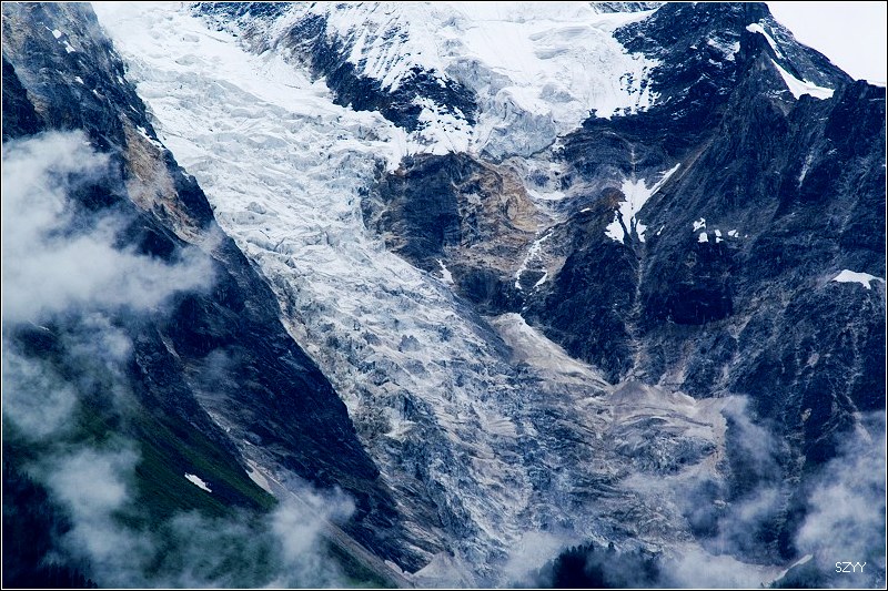 4点15到波密,去超市买了些食品,以备后患。后面就要过通麦天险和排龙天险了,达咏接替我开车。5点20,遇到了那处大型泥石流。远远看到一辆大巴陷在里面。两侧堵了不少车,大铲车正用大铲子把一辆广本往外拖,就是刚才独立过前面小型泥石流那辆西安的车。这次底盘肯定刮的惨不忍睹。我们都下车,站在高处观察情况。有铲车在清理,但是看规模,天黑以前是不可能清理完的,山谷里流出来的水很急,漫过路面流进深谷,有一辆丰田4500试着开了过去,一个武警过来看了看被堵的这些车,说我们的四驱车可以过。别的车不行,我们只好暂时告别老曲,跟他们说我们先走了,等他们过来以后再联系。老郎驾车,小心翼翼开过去,我们都提心吊胆,怕熄火,怕被湍急的洪水冲的侧滑下去。底盘还是被刮了几次,不过总算过来了。因为比较匆忙和紧张,没拍照片。