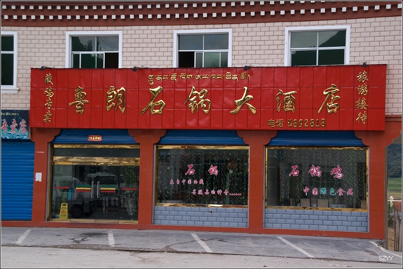 7点40开车往鲁朗方向,几分钟就到了鲁朗镇,在这家石锅店吃了碗面条,仍然是四川人开的店。
