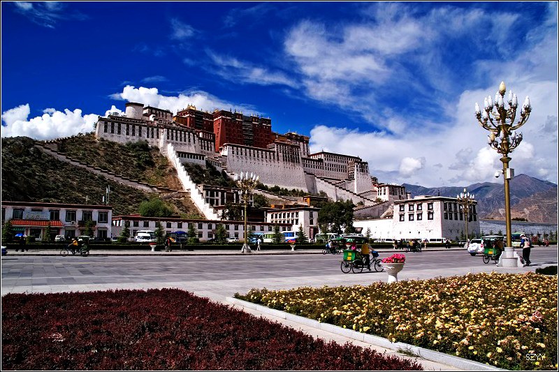 去布达拉宫,门票买不到,每天只卖出700张,当天即使买到也是第二天的票。排队买票要五六个小时,黑市票炒到500多一张,走的时候luck21cn兄介绍让我们到了拉萨,找西藏摄影家协会的副主席帮忙,那是他的朋友.可是我们想了想,还是不要给人添麻烦了,再说对宗教了解不多,布宫里面也不让拍照,还是决定暂时不进去了,回程的时候再看情况。在外面拍了几张布宫的照片。然后去了罗布林卡。
