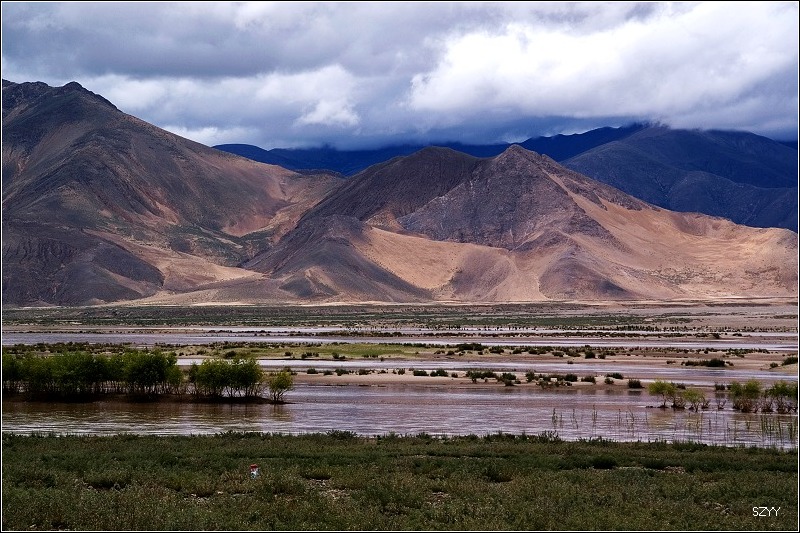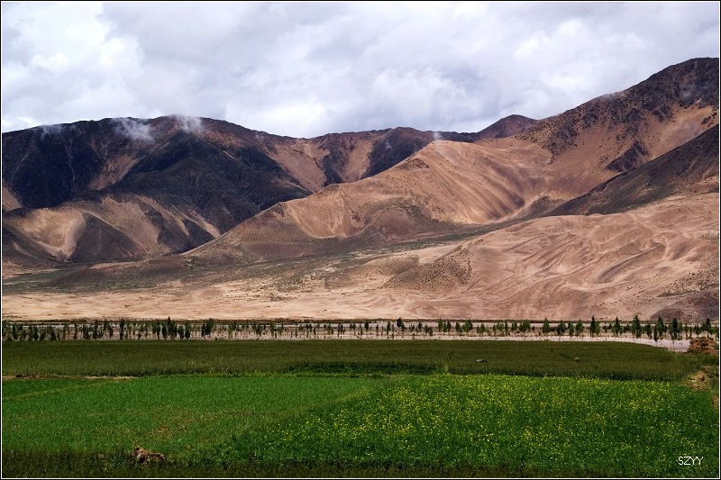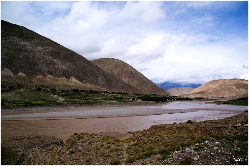 第十五天(7月28日)拉萨到日喀则 7点45起床,收拾停当,达咏等着开水烧开灌热水,9点10分出发,赶往日喀则,沿雅鲁藏布江的机场大道,车速都非常快,不久,交警把车辆都拦了下来,下车去问了问,原来是发限速卡,规定到达某个地点必须至少要用多少时间,后来才体会到,这一招比电子眼和雷达测速要管用的多,你开快了也没用,开快了就要停下车,干别的事把时间耗掉,然后才能到下一个值勤点盖章,否则警察就算你超速,我和老严轮流开车,好在我们经常停下车拍照,开的还不算快,有的时候远远看到警察值勤点了,时间用的还不够,就停下车,把时间用完,再开过去盖章。 从拉萨到日喀则跟林芝到拉萨相比,景色有天壤之别,林芝到拉萨,一路植被茂密,景色优美,高山深谷交替,落差巨大,往往达几千米。植被垂直分布十分明显,从热带到寒带的植物都能见到,从下到上,分布着热带雨林到温带阔叶林、混交林、针叶林、灌木林、高山草甸、苔藓直到什么也不长的雪线以上,一座座雪山。而拉萨到日喀则则是植物稀少,甚至满眼望过去,看不到一棵植物,起伏不大,但都是在高原山地行车,如果没有雅鲁藏布江相伴,看着跟在火星上一样,石头都是红色的,十分单调,感觉是不适合人居住的地方。可惜这些荒凉的地方没拍照片,后面遇到有了绿色才拍了几张照片. 中午在路边小店吃饭,看到一个开丰田4500的藏族司机,我问他去珠峰大本营的路况,他说以前开欧蓝德肯定没问题,现在定日那边在修路,要走别的路,加上下连阴雨,他开4500都不敢单车走,必须跟别的车搭伴,我们的欧蓝德可以肯定过不去,于是我们彻底放弃了去珠峰大本营的计划。 下午4点到了日喀则,海拔3950米,雨还在下,开车到了扎什伦布寺的停车场,问了问,扎寺5点关门,进去看肯定是来不及了,只好先住下,明天再来看吧,出停车场,一个藏族老头要收停车费,我们说我们刚停下,只是打听打听,连3分钟都不到,还要收费,老头什么都不听,只是必须交费,算了,不跟他争了,这地方没理可讲,交了钱,找酒店,最后在圣康饭店住下来。 外面继续下雨,我们先睡一觉,醒来天还大亮,这地方要到8点半以后才会黑天。嗓子干痛,头也有点儿疼,不知道是因为高原反应还是因为酒店新装修的甲醛气味影响,起来喝了两杯水,吃红景天,因为没有高原反应,我已经好多天没吃红景天了。怕感冒,又吃了两粒感冒药。达咏过来叫我们出去吃饭,背上摄影包,刚走了几步,就觉得发虚,所以决定不去了,打开窗户透气,躺一会儿,让他们几个回来的时候帮我带点儿吃的。 躺了一会儿感觉好多了,没事干,干脆整理一下日志,给LP打了一个电话,平时对她开车总是不大放心,叮嘱几句,让她注意点。女儿也很好,这就放心了。 去不了珠峰大本营,到日喀则已经不打算再往前走了,晚上我们决定明天直奔江孜宗山堡和羊卓雍措。