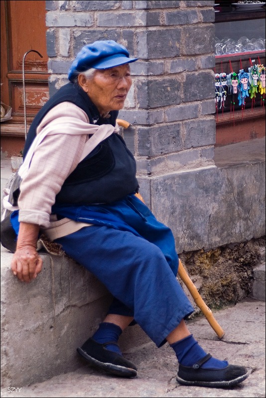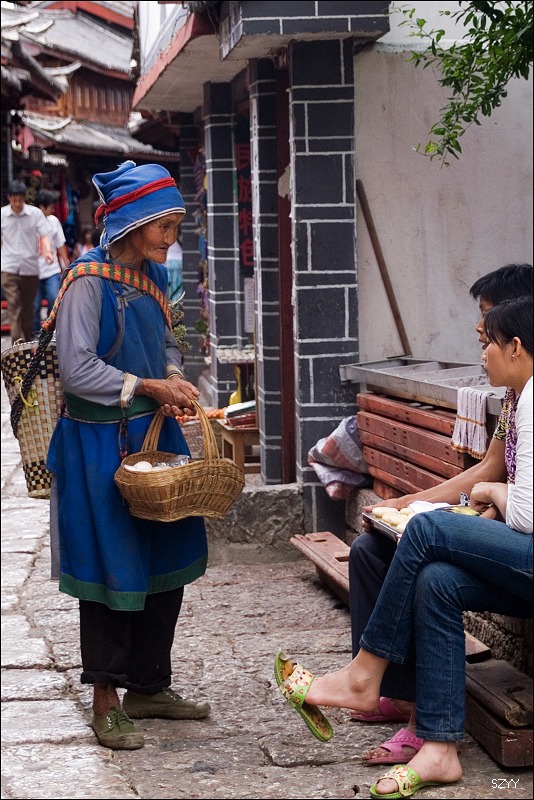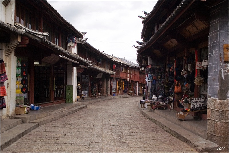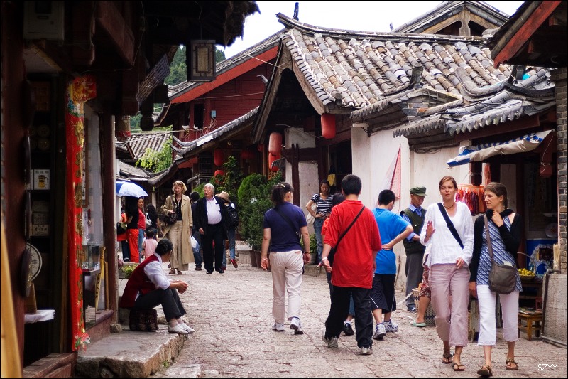 早晨起来天气有些冷,加了些衣服,退房,把车倒出小院,找了家小店,吃了当地特色洱丝,不好吃,有些粘牙。中途无话,一路极为郁闷,开这种限速得有点变态的路,实在是一种折磨,不提也罢。沿途有几次停车拍照。另外隐约看见了玉龙雪山,中午12点30到丽江,因为老曲和关老师要看张艺谋导演的节目,我们就先在丽江古城里随便拍了些扫街片,然后达咏和老严去买氧气,我和北方郎在停车场等老曲他们来汇合。然后一起开车赶往中甸,也就是香格里拉。