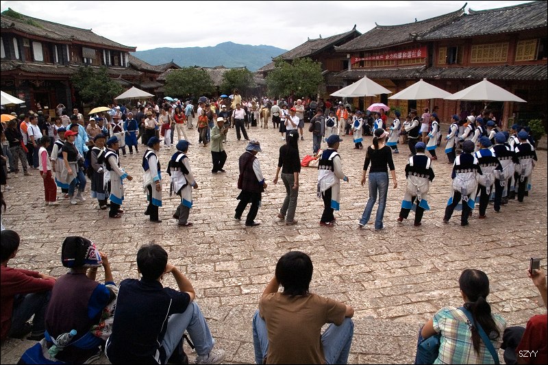 跟8年前我去丽江的感觉完全不同,那时候印象中他们是自发跳舞,快乐幸福溢满脸庞.非常纯朴.