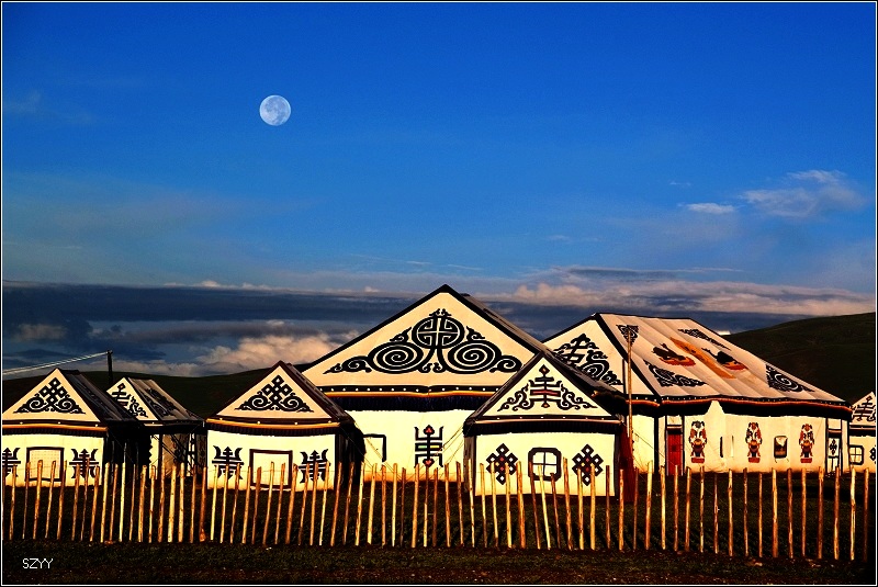 早晨晴空万里,一轮明月斜挂天空,赶早去纳木措,到了门口,卖票的比我们还勤劳,早就等在那了,呵呵。进了门,几乎看不到别的车,一路上行,感觉车有些动力不足,甚至个别地方用了一档,前面还没遇到这种情况,甚至五千多米的地方都没有觉得动力不够,当雄海拔4300,到这里才四千四五百米的样子,也许是因为这里植被稀少,所以更缺氧吧。