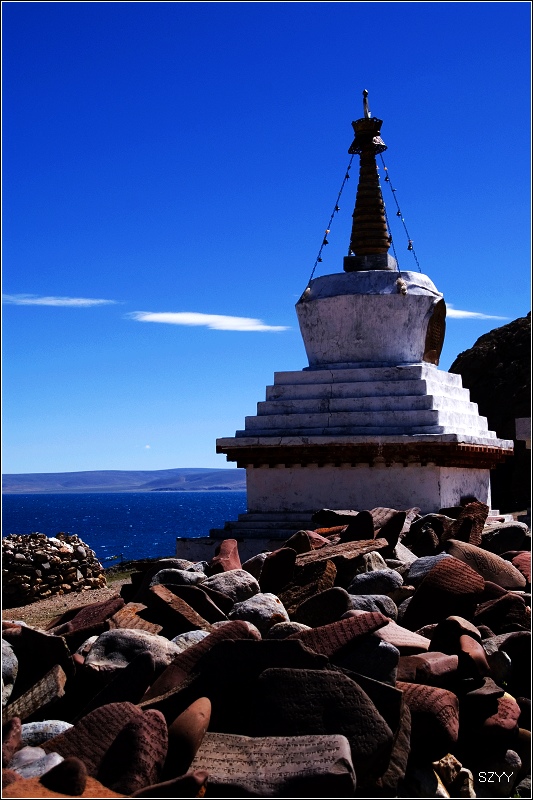 继续开到纳木措,我们到的时候,旅游车都还没来。在停车场停好车,用缓慢的动作背上摄影包,慢慢地往湖边走。