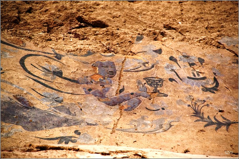 这壁画很特殊的地方就是面部是浮雕,而不是平面