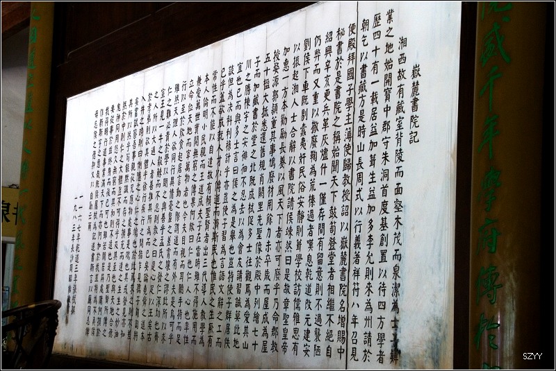 早晨没吃早餐,只喝了杯豆浆,开车过湘江大桥,到岳麓书院。这所千年学府目前属于湖南大学,对湖湘文化传统的形成产生了深远影响。岳麓书院创立于北宋开宝九年(976年),同白鹿洞书院、嵩阳书院、雎阳书院(也叫应天书院)一起,并称为中国古代四大书院。朱熹曾两次来此讲学。