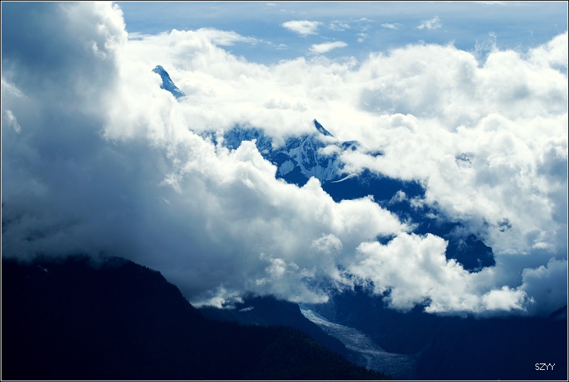 第八天(7月21日)被困梅里 昨天晚上下了一夜雨,早晨起来天还不亮,本希望拍到梅里日出,看来没戏了。各吃了碗面条,10元一碗,7点15在雨中出发前往盐井,刚开出不久,就看到前面正在塌方,两个山体中间的泥石向下滑,两块篮球大的石头往下滚,山体上的碎石泥土流下来盖住了整个路面,显然无法通过了,而且我们进入塌方区域,路面有很多昨晚从山上掉下来的石头,随时有危险,立刻掉头,往回开,北方郎看了看早晨刚清零的里程表,离开我们住的梅里客栈约9公里。回头看,塌方还在继续,像泥石流一样往下流。路上拦住几辆车,跟他们说了情况,于是全部返回飞来寺,雨在继续,看到路边有帐篷和大铲车,我下去,钻进帐篷,喊了几声,里面黑黑的,看清有三个人,我说了说情况,请他们帮忙清理路面,他们说他们不是道班。跳回车上,赶回客栈,只有等道班修路了,客栈老板说今天肯定过不去了,而且他说20年来没见过这样下连阴雨的。而且雨不停,道班是不会出动的。 没事干,达咏说去飞来寺看看。我们穿上雨衣,这时我才想起来忘了买雨裤,后面可能会遇到麻烦。从客栈到飞来寺走路只有十几分钟的距离,看了看,是个很小的寺庙,有几个藏民在上香。没什么好拍的,返回客栈,下午一直呆在梅里客栈的火塘聊吧,他们几个打牌,我上网,回了几个帖子,处理了几张照片。这时在网上看到川藏线国道318芒康到竹卡段19日发生大面积山体滑坡,当地武警在抢修,无论滇藏线还是川藏线,这一段都是必经之路。不知道现在是否已经修通。准备去盐井方向的车都停在了客栈外面,有的返回德钦,广州的那位壮汉跟我们商量是否返回奔子栏镇,然后走德荣,从巴塘方向并入川藏线进藏,可是这样就要重新翻越白马雪山,会多耽误一天时间,而且德荣到巴塘的路不是国道,万一遇到塌方,估计没有这边214国道清理的这么快。所以大家决定就地等待。云雾朦胧中看到对面的梅里雪山上冰川比昨天宽了很多,冰雪大量增加。显然昨天我们这下了一晚上雨,而山上是下了一夜雪。拿出相机,用长焦拍了几张冰川的片子。听到当地一个司机说,下午就会有人去清理塌方,而且塌方不止我们遇到的9公里处,还有23公里的地方也有,规模跟这边差不多。 客栈的主人是一个小伙子,他把整个家庭旅馆承包给了别人,他在这条线上开了很多年车,跟我们分析了路况,建议我们住下等待,一个开深圳车牌的老头跟他抬杠,说可以自己用铲子挖,还说自己开车的年龄比小伙子的年龄还大,那小伙子有点不高兴。 想更新一下QQ空间的日志,自从出行以来,很少有机会上网,日志只有第一天的。可是很奇怪,能上QQ,却不能更新内容,只好作罢。客栈酒吧里几群游客都在打牌,有几个沉不住气的年轻人已经在计划不进西藏,往回走了,广州壮汉跟我说:年轻人就是没有耐心哈,我笑了笑。反正不着急,因为在计划出行的时候,我们预留了旅行的机动时间。 中午睡了一觉,醒来继续等待,下楼看到旅游局的局长,跟他聊了聊,他说有不少游客被堵在塌方公路的另一侧,雨崩和雪山的其他地方,回不来,所以旅游局派人清理9公里处的塌方,23公里的似乎没动静,大约下午4点,看到一辆装载机开过去,但愿能早些恢复通车。下午4点半听深圳老头说通车了,马上退房间,出发,到了9公里处,还不通,铲车正在清理,说要40分钟,23公里处也修通了。可是过了没多一会儿,就听说去盐井的路上不通,连佛山都到不了,只好掉头,再次返回梅里客栈。 继续等待,大家有些烦躁。那个深圳老头开车过去了,估计他会被堵在盐井附近。晚上,广州壮汉过来跟我和北方郎商量第二天的行程,听他说普通话的口音,我问他是不是陕西人,果然是,他是西安的,在广州工作。他让我们叫他“光头”,他听说中甸开往拉萨的班车已经改走德荣,这跟我中午睡觉时听外面一个女孩大声打电话时所说的内容相符。我们商量后,也觉得走德荣的方案可行,这样我们又要重新翻越白马雪山,返回奔子栏镇。那边的路我们大家都没有走过,也充满未知数,不过看着不断下着的雨,滇藏路不通,晚上还可能发生新的塌方,更遭的是,如果德荣那边也发生塌方,我们就有可能走稻城亚丁那边最后返回成都,再回深圳,这样无功而返让人实在不甘心,但是道班雨天又不工作。这样干等下去也不成。最后跟达咏和老严商量了一下,大家下定决心,走德荣。早晨6点起床,6点半出发。