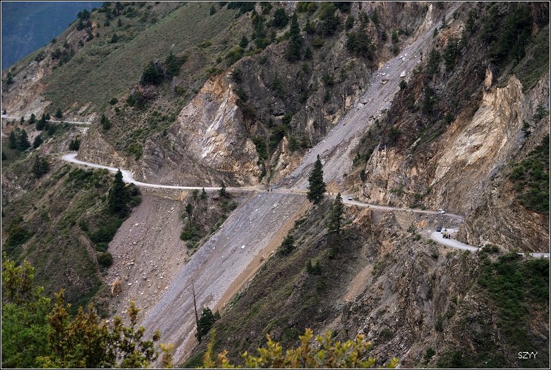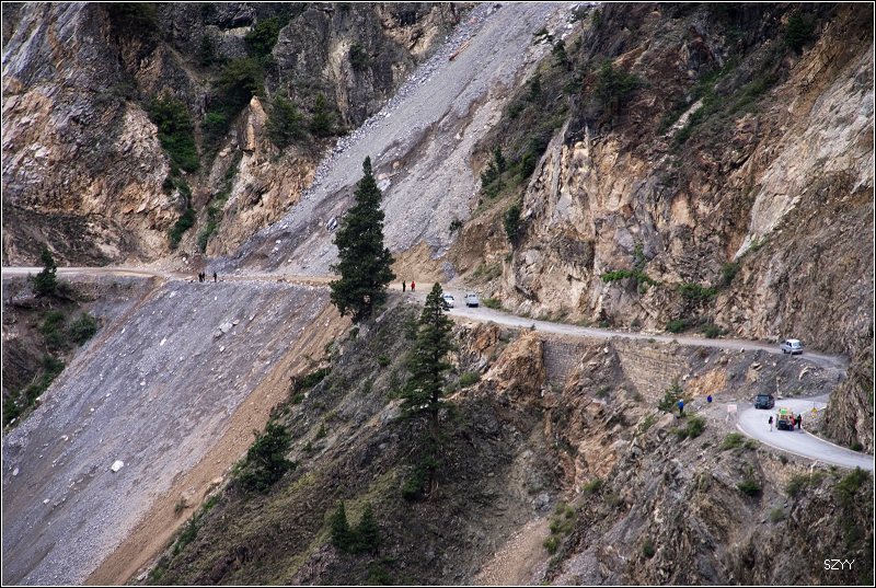 推土机 荣誉会员 荣誉会员 注册 2004-11-28 消息 2,034 反馈评分 0 点数 61 2007-08-18 #149 随着海拔高度的升高,备用油桶密封不严,车里又充满了汽油味,这几天,我们已经学会了根据汽油味的大小判断海拔高度的变化,呵呵。 在奔子栏镇一家藏族人开的餐馆里吃了顿面条,11点吃完饭,我们立刻出发,翻越白马雪山我没出现什么高山反应,不过由于精神高度集中,一上午的驾驶还是很累的,换北方郎开车,没走几分钟,就发现前面堵了一大队车,原来是这里山体滑塌,好在已经有人在清理了,不过看着右测,山上的石头还是很松,随时会掉下来,左面是金沙江,车辆开始但单向逐车放行,迅速通过,刮了一下底盘。前行不久过了金沙江大桥,离开云南境内,进入四川,沿金沙江向北,走上我走过的最危险的路。起先的路还好,我们走了一段时间,就发现路面到处都有从山上崩落的石头,到处都有小的塌方,到处都有碎石或巨石横在路面。