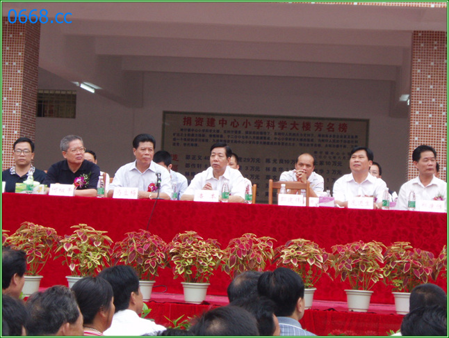 树仔中心小学科学楼落成暨树仔村教育慈善基金会成立庆典仪式! 2007年9月6日.各级领导、各界嘉宾及树仔中心小学全校师生全体欢聚