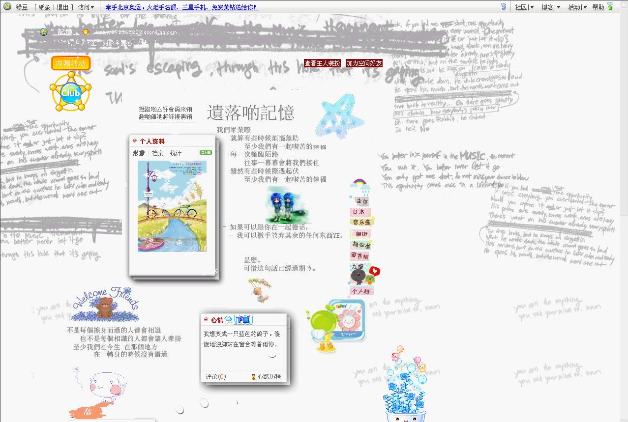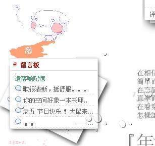 今天是第二天来这里了.. 却发现这里好像有点冷清.. 对QQ空间有兴趣的朋友来互动下 不必帮偶踩... 因为总觉得那样没什么意义... 觉得自己空间还不错的朋友留下你们的空间链接 偶没事会到你们家拜访拜访的.. °n 有空欢迎来串门
