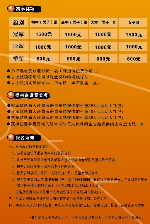 L lin_jump 幼儿园 注册 2007-06-12 消息 26 反馈评分 0 点数 0 2007-10-09 #1 电白动感地带三人篮球赛即将拉开序幕! 奖金高达1500元,还有安踏公司提供的价值588元的运动大礼包!快快来参加啦! 详情请咨询当地移动服务厅;或加入QQ群:48305540 附件 篮球1.jpg 132 KB · 查看: 354 篮球2.jpg 296.8 KB · 查看: 303 篮球3.jpg 129.7 KB · 查看: 310 篮球1.jpg 132 KB · 查看: 346