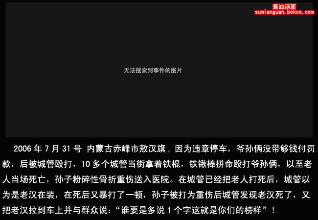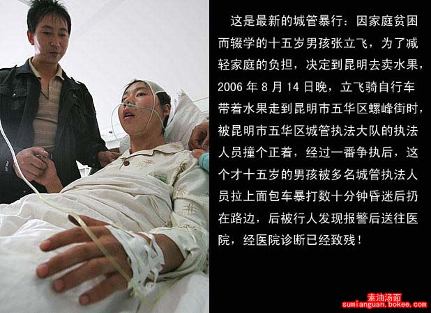 哀悼死者,同时声讨罪恶、丑陋的城管制度,愿胡锦涛的新政能彻底铲除这些社会的毒瘤。胡政府作为一个采取了诸多进步措施的政府,完全有能力这样做."