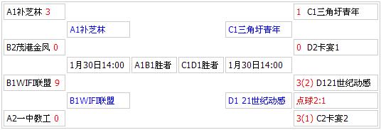 29号下午展开了8强的争夺,下面为比赛成绩 A1补芝林 3:0 B2茂港金凤 WIFI联盟 9:0 A2一中教工 C1三角圩青年 1:0 D2卡宴1 D1 21世纪动感 3:3 C2卡宴2 点球 21世纪动感 2:1 卡宴2 [attachmentid=161313] 30号将展开4强的争夺.