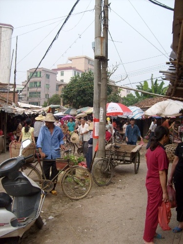瓷厂的市场挺热闹,在这里卖菜和买菜的不但有瓷厂人,也有附近的居民.一般一点钟就散市了