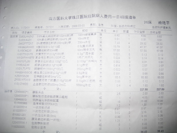 病人赖艳平,电白霞洞人仕,于三月三日入院,并于三月十三日开始化疗.