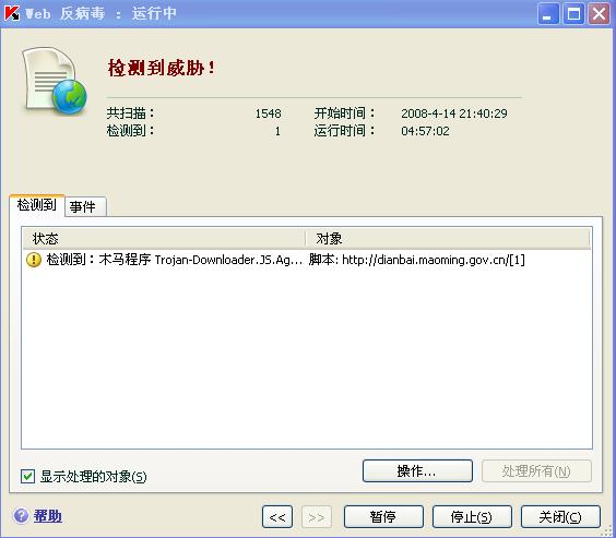 QUOTE(我不是郭靖 @ 2008年04月14日 Monday, 10:42 PM) http://dianbai.maoming.gov.cn/ 大家注意了, 电白县政府网站给人挂了几个木马, 千万不要浏览, 很容易中招! [snapback]2192415[/snapback] 几个?我的只检测到一个,其他是什么样的?