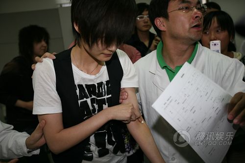 腾讯娱乐 5月13日下午,李宇春来到北京市红十字会血液中心为灾区人民献了200毫升献血,由于晕血,献血时李宇春一直别过脸去。