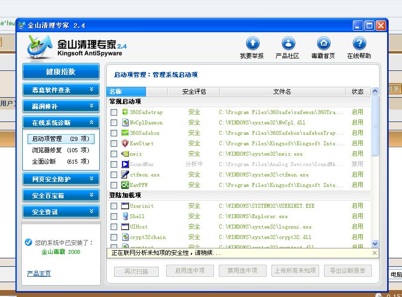 金山清理专家显示所有进程都是安全的.....