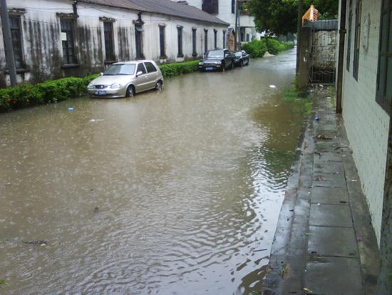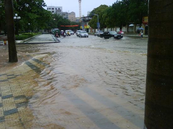 咸水田(城岭路口)――西湖的一段路9:10左右有如黄河之水天上来,路面水深80厘米左右,被浸熄火的有好几架车。