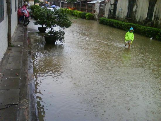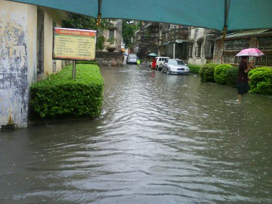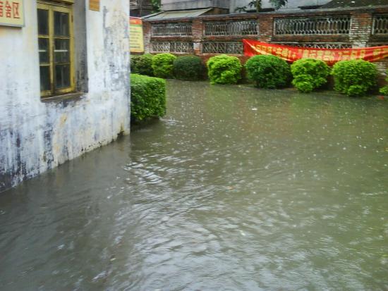 房子的门口也浸水了,到了小腿肚子。。。附近的河涌也满了