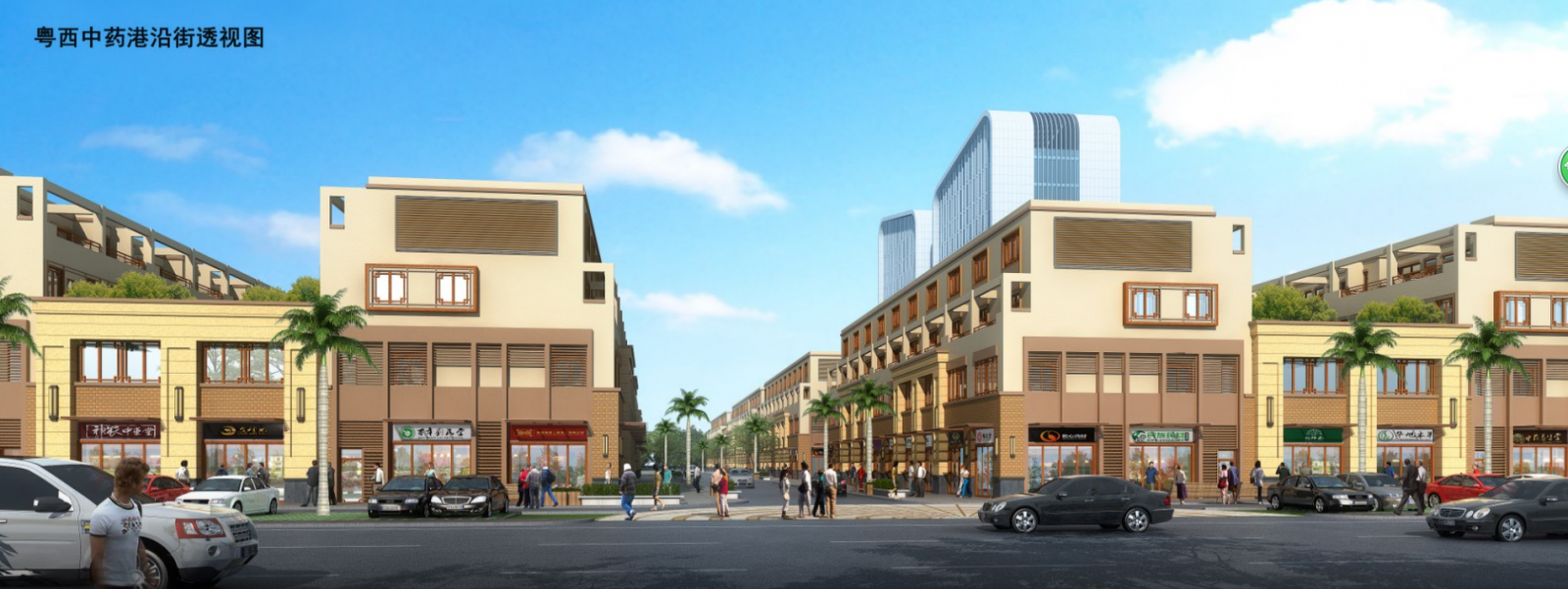 粤西中药港位于该规划位于茂名市电白区回归反哺创业园,处于电白县城北面,靠近柳粤铁路、茂名港和广湛高速公路。计容建设总量为15万㎡,其中一期建筑面积为77036.26㎡。本项目集中药材专业市场、科研生产大楼、中药制药厂、专业信息服务检测站、现代化物流仓储中心、电子商务中心、中药材精品馆、中药材交易馆、国药交易中心、金融服务中心、国药会展中心、品牌孵化、南药大数据、人才孵化、大健康产业孵化、生活休闲配套区等功能于一体。园区还将配套引进中医药大学、中医诊疗机构、中医中药研发和检测机构入驻。园区通过引进上市公司治理结构,专业市场运营商,构筑一个集科研与生产、教育与生产相结合的创业孵化平台,弘扬中医传统,助力南药复兴,为区域经济的发展做出贡献。