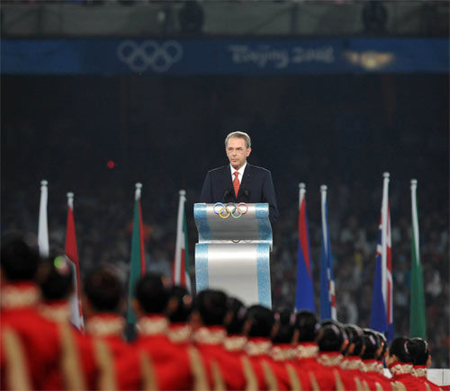 8月24日晚,第29届夏季奥林匹克运动会闭幕式在北京国家体育场――“鸟巢”举行。这是国际奥委会主席罗格在闭幕式上致辞。新华社记者王雷摄