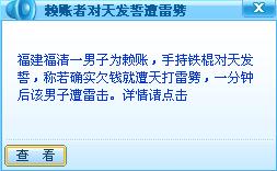 QQ消息 说福建福清有个人为了赖账 手持铁棍对天发誓说自己要是欠钱就天打雷劈 .....