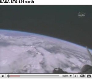 请看这个录像(http://www.youtube.com/watch?v=qxRskxvDzdQ),这是美国太空署2006年7月发现号太空梭飞到国际空间站执行任务(代号STS-121)时拍摄的录像。当飞船沿着切向(就是沿着球面的边缘)观察地球的时候,我们会看到地球边缘有一圈比较柔和的蓝色(附件1),使得图像边缘不太清楚。