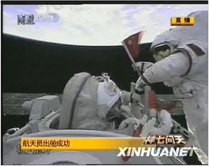 这样小的体积之内,因为外太空气压为0(真空),几乎当舱门打开的1秒钟之内,内外压差就会达到平衡,即舱内达到完全真空。所以当数分钟后,翟志刚探头出舱的时候,舱内早已经是真空状态了,哪有什么气流飞出?在真空、失重状态下,物体飞行没有阻力,但是必须有一个初始速度才可能飞动。可是“直播录像”中却不断有小物体高速向上飞出。比如录像(http://tw.youtube.com/watch?v=fvz0GZPNIF0)中0分3秒,小物体从舱门向画面右上方斜飞出,5分49秒,从画面右方太空人头盔下冒出,6分42秒,从画面太空舱快速冒出,7分17秒,从画面左上角快速冒出,斜飞上去。