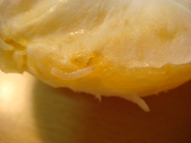 撕开橘肉两条蛆虫冒出来