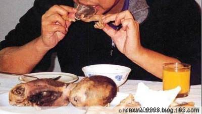 一桌人围着分食。真的想象不到,那些食客是怎么下口的。他们在吃之前,难道就那么心安理得吗?我想,任何一个心存良知的人,都不会做出这样的事情来。