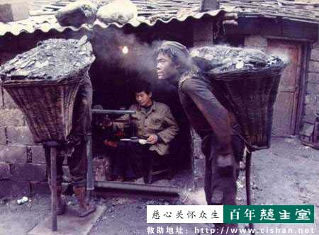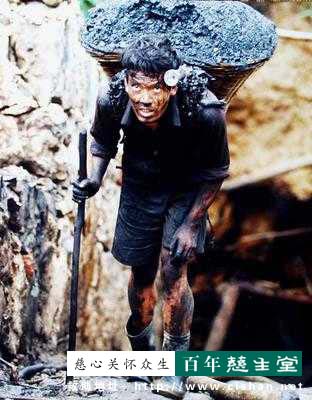 王致中17岁, 在贵州以背煤为生。一筐煤40公斤,从煤坑向上爬100米,然後再走1000米山路,挣1元人民币...