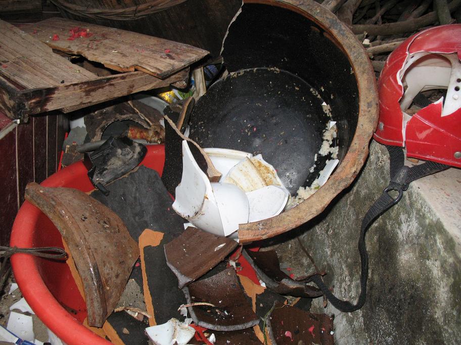 这两张是被打老人小儿子结婚时准备用的餐具,已被全部咂烂,图片里的只是一小部分
