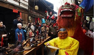 1月29日,年初四:电城楼阁等村的年例、走公、拜神、高脚狮子等