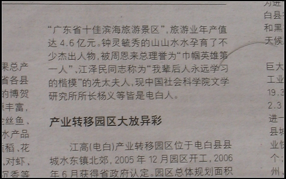 不 不差钱 大学四年级 注册 2009-02-15 消息 928 反馈评分 8 点数 1 2009-02-18 #22 我于2004年12月在海南三亚天涯境区旅游的时候,当地导游对着冼太夫人出征群雕说:“冼太夫人是电白人”,作为电白人,我当时感到一阵自豪。 出于一种崇敬,我走到群雕台阶前,冒着蒙蒙细雨,三跪九kao首。