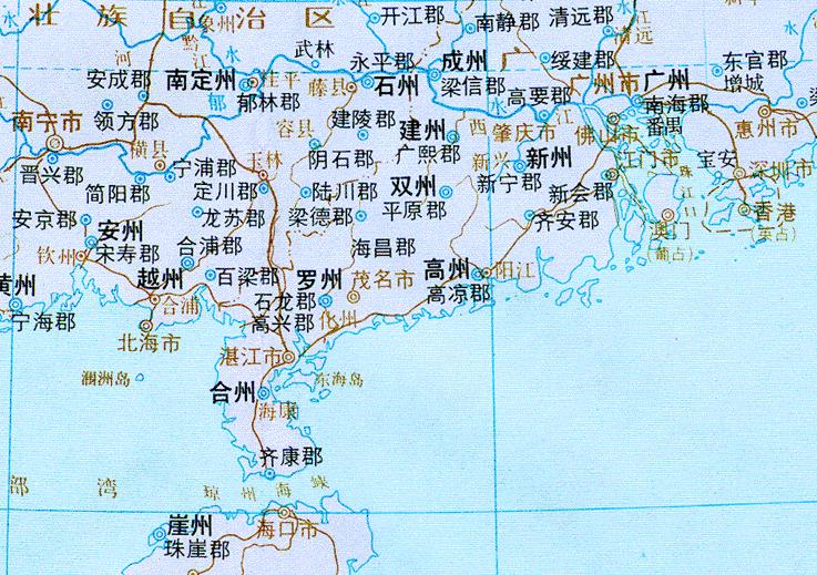 大家应该先弄清楚:古高凉、高州并非现在的高州。大家看下下面梁朝、陈朝、隋朝、唐朝的地图(剪自《中国历史地图》)就清楚了。 黑色:古地名 暗红色:今地名 梁朝: [attachmentid=206686] 陈朝: [attachmentid=206687] 隋朝: [attachmentid=206688] 唐朝: [attachmentid=206689]