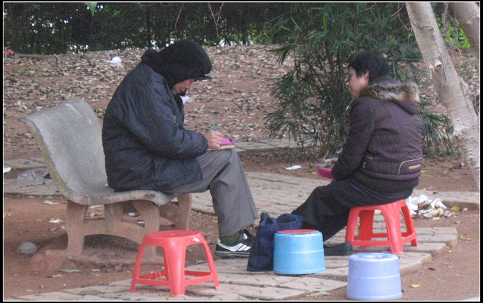 今天早上,本人仔细一瞧,从西湖门口到公园桥边,路上两旁及中间花带,全部摆上算命的摊档,男男女女,大概有20多档之多,何其壮观!